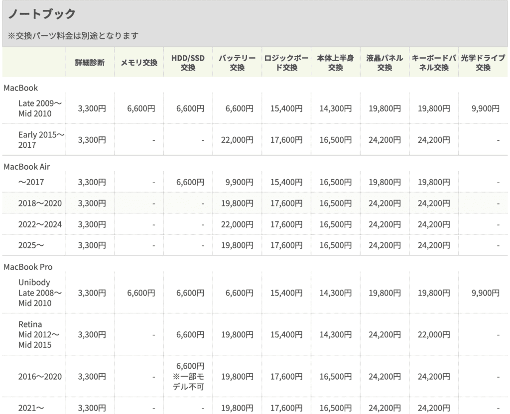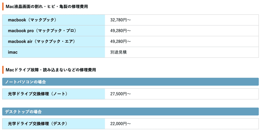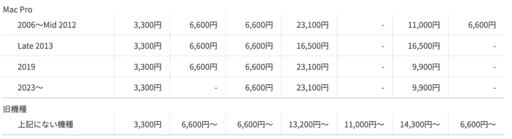 ▼Macの修理・トラブル解決におすすめパソコン修理業者料金表