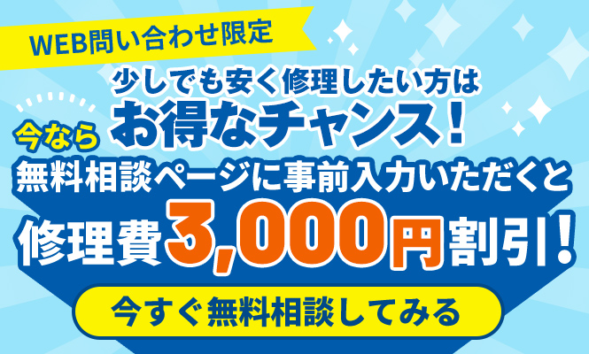 WEB問い合わせ限定の3,000円割引(メール上は3,300円適用)は実質的なメリットです。持ち込む前に費用感をある程度把握できるのも安心です。
