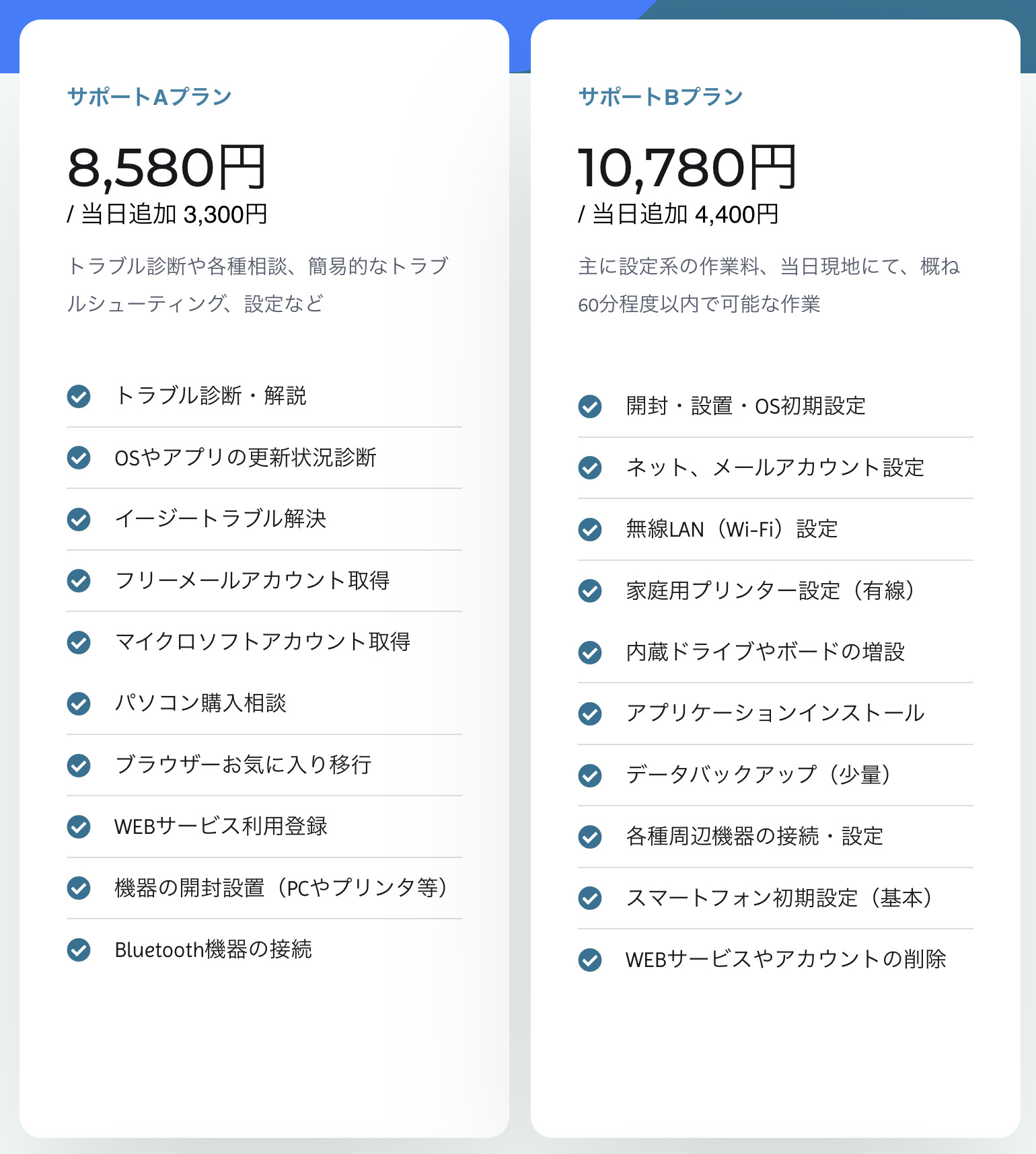 パソコンの使い方・疑問 / メール設定 / パスワード忘れ / パソコン(内部)クリーニング